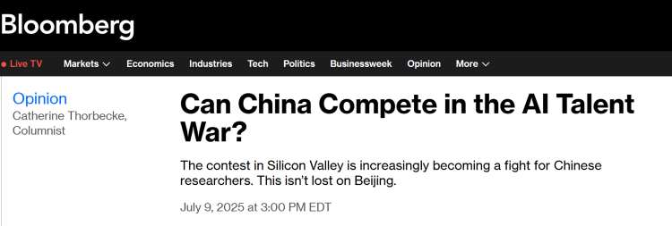 美国彭博旧事社的一篇文章从人才培育取吸引力角度阐发中国人工智能财产成长潜力。吸引全球注目。打破了硅谷封锁的贸易模式,中国强大的开源人工智能模子DeepSeek-R1模子的发布,